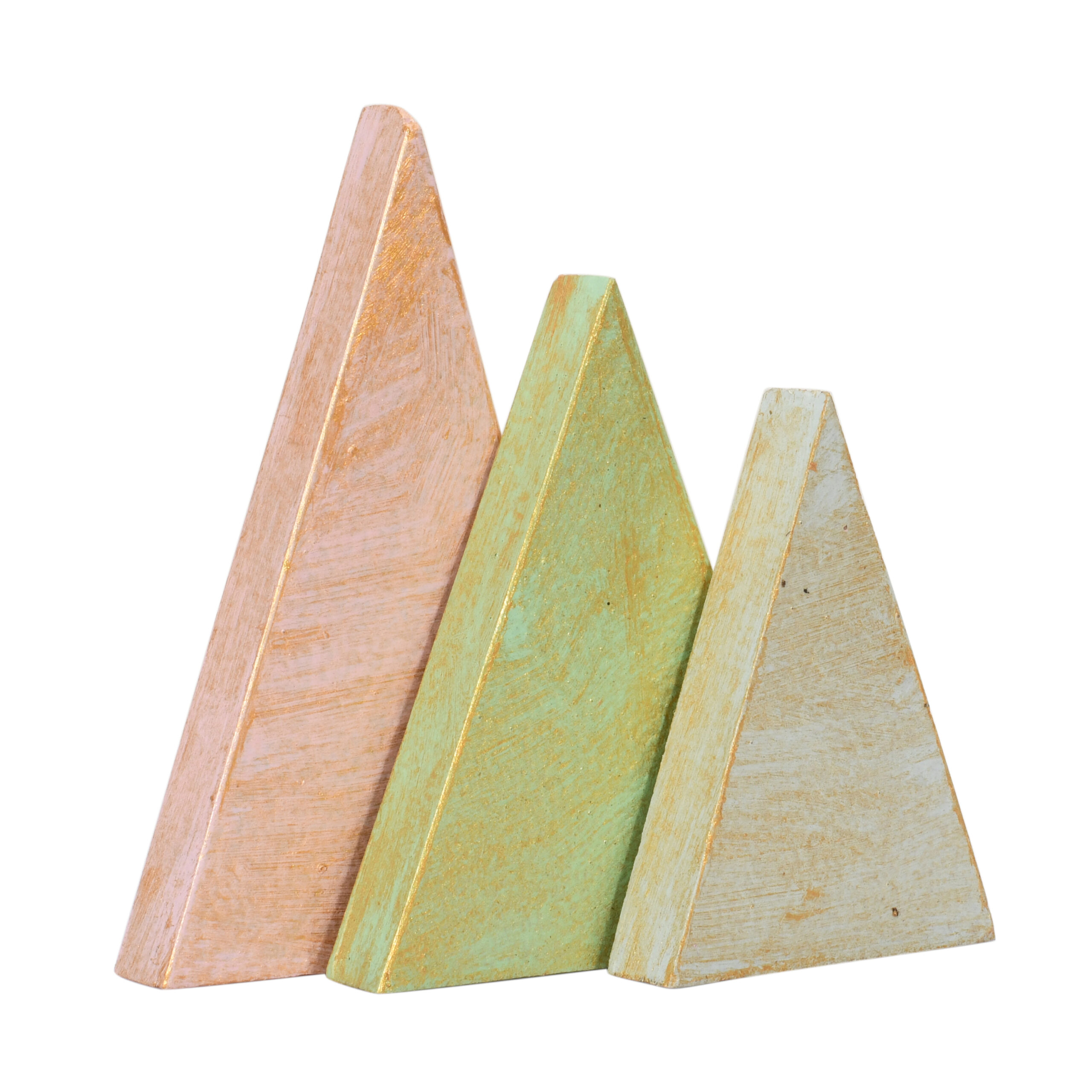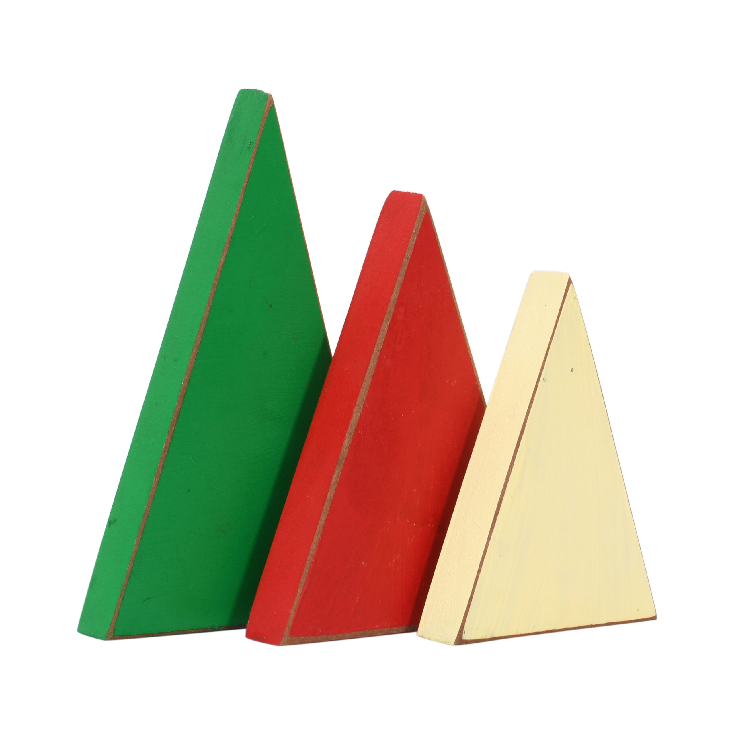 CRAFTMITRA Premium MDF Christmas Triangle or Tree shapes for Table Decorations | Artificial Handmade Christmas Tree | 3 Piece Spruce 14 cm (Multicolor)