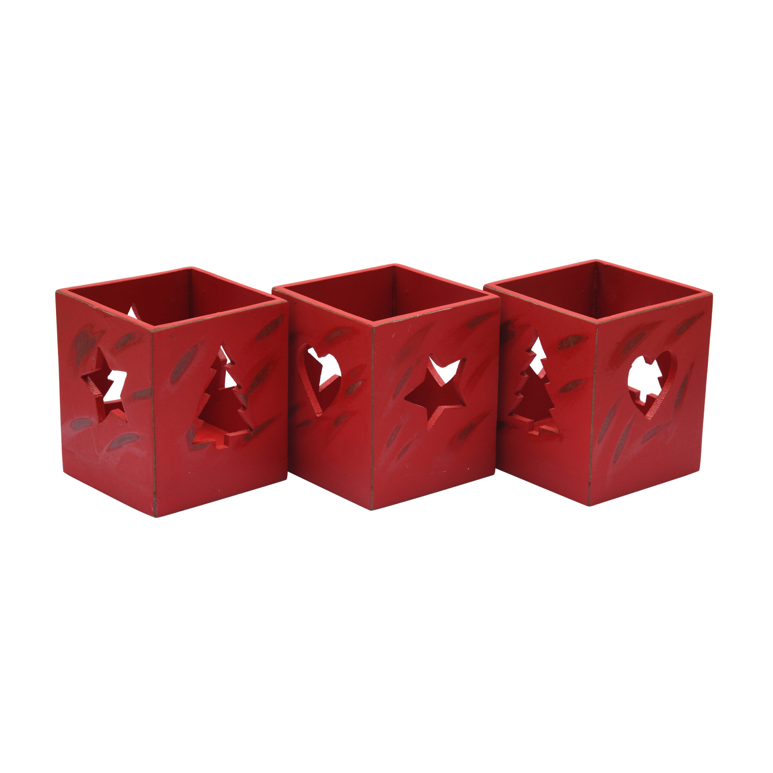 CRAFTMITRA Rustic 3 combo RED Tea Light Holder for indoor and Outdoor Decoration | HEART, Tree And Heart Shaped Hole | RED Tea light Holder | Premium MDF | Wooden Base | Unique & natural Holder for Living Room Bedroom Office Storage Kitchen ( 3 Tea Light Holder ) ( 8L x 8W x 12H ) Cms