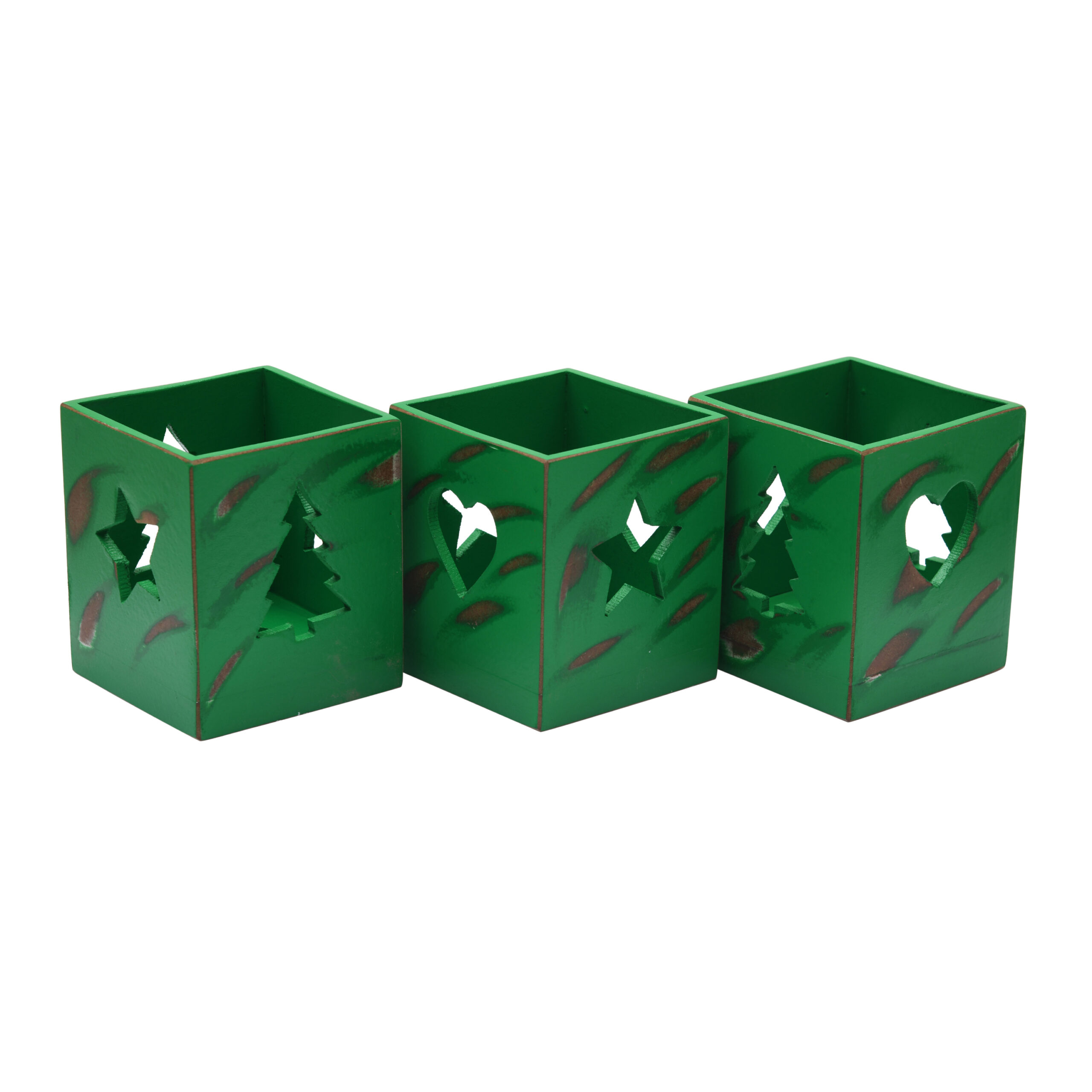 CRAFTMITRA Rustic 3 combo RED Tea Light Holder for indoor and Outdoor Decoration | HEART, Tree And Star Shaped Hole | GREEN Tea light Holder | Premium MDF | Wooden Base | Unique & natural Holder for Living Room Bedroom Office Storage Kitchen ( 3 Tea Light Holder ) ( 8L x 8W x 12H ) Cms