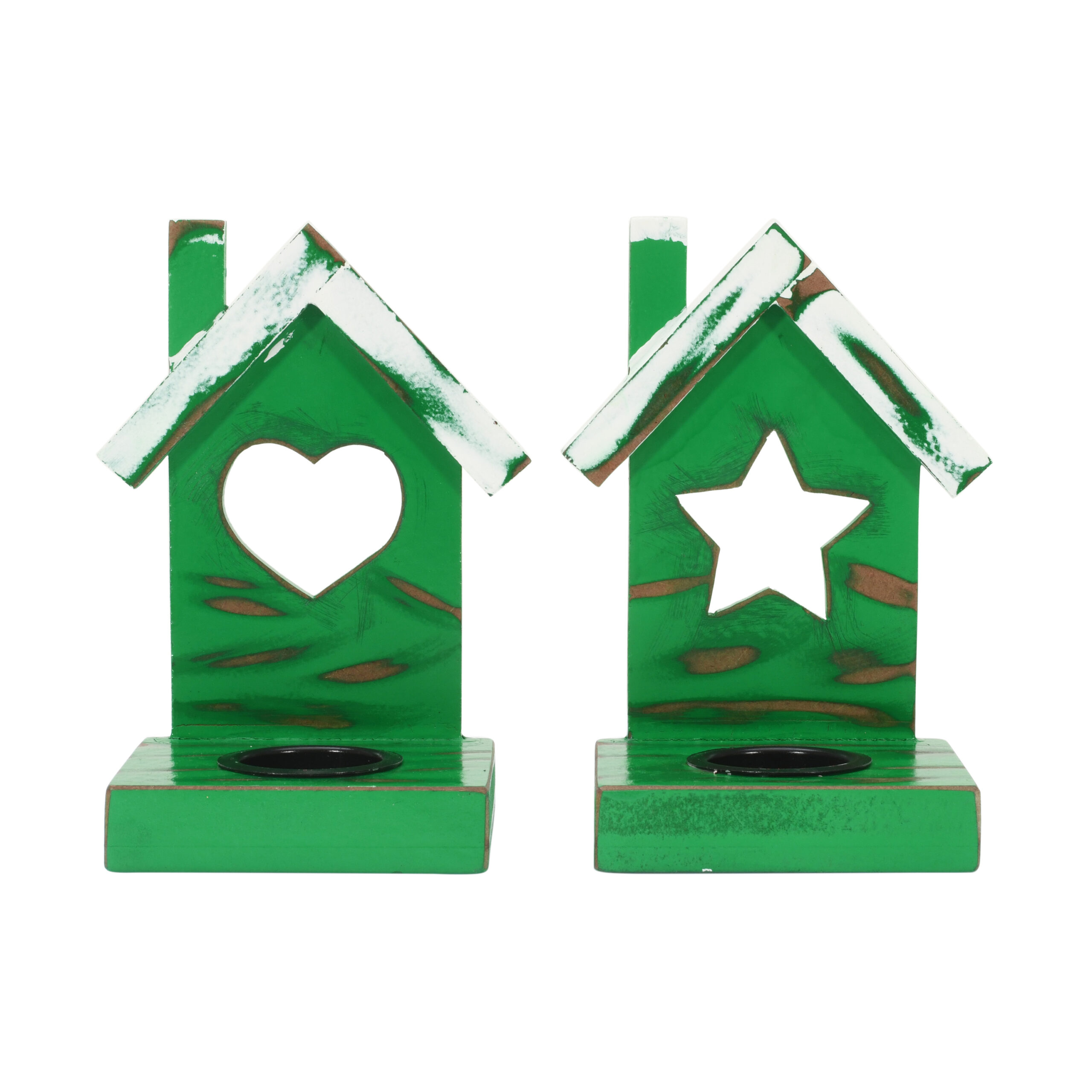 CRAFTMITRA Rustic GREEN tea light holder set of 3 Love tea light for indoor and Outdoor Decoration | HEART and STAR Shaped Hole, house shape | green Tea light Holder | Premium MDF | Wooden Base | Unique & natural Holder for Living Room Bedroom Office Storage Kitchen ( 2 Tea Light Holder ) ( 10L x 8W x 18H ) Cms