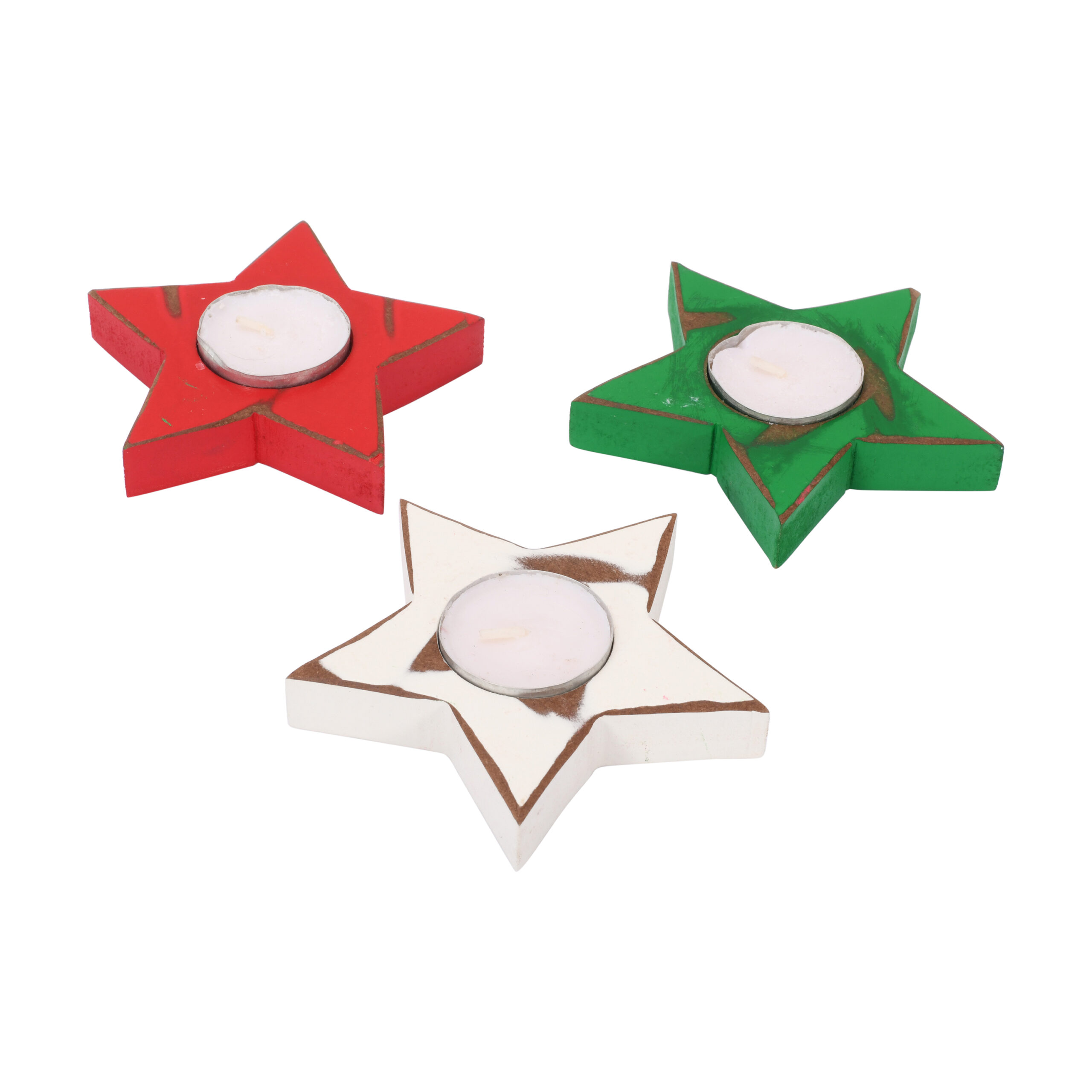 CRAFTMITRA Rustic Premium MDF 3 Combo Candle Holder (Small) | Rustic WHITE, RED And GREEN Color | Star Shaped Candle Holder | Decorative Candle Holders for Living Room and Home Decor | MDF Candle Holder for Wedding, Parties, Gifting and Dining Table Centerpiece ( 3 Tea Light Holder ) MULTICOLOR ( 10L x 10W x 2H ) Cms