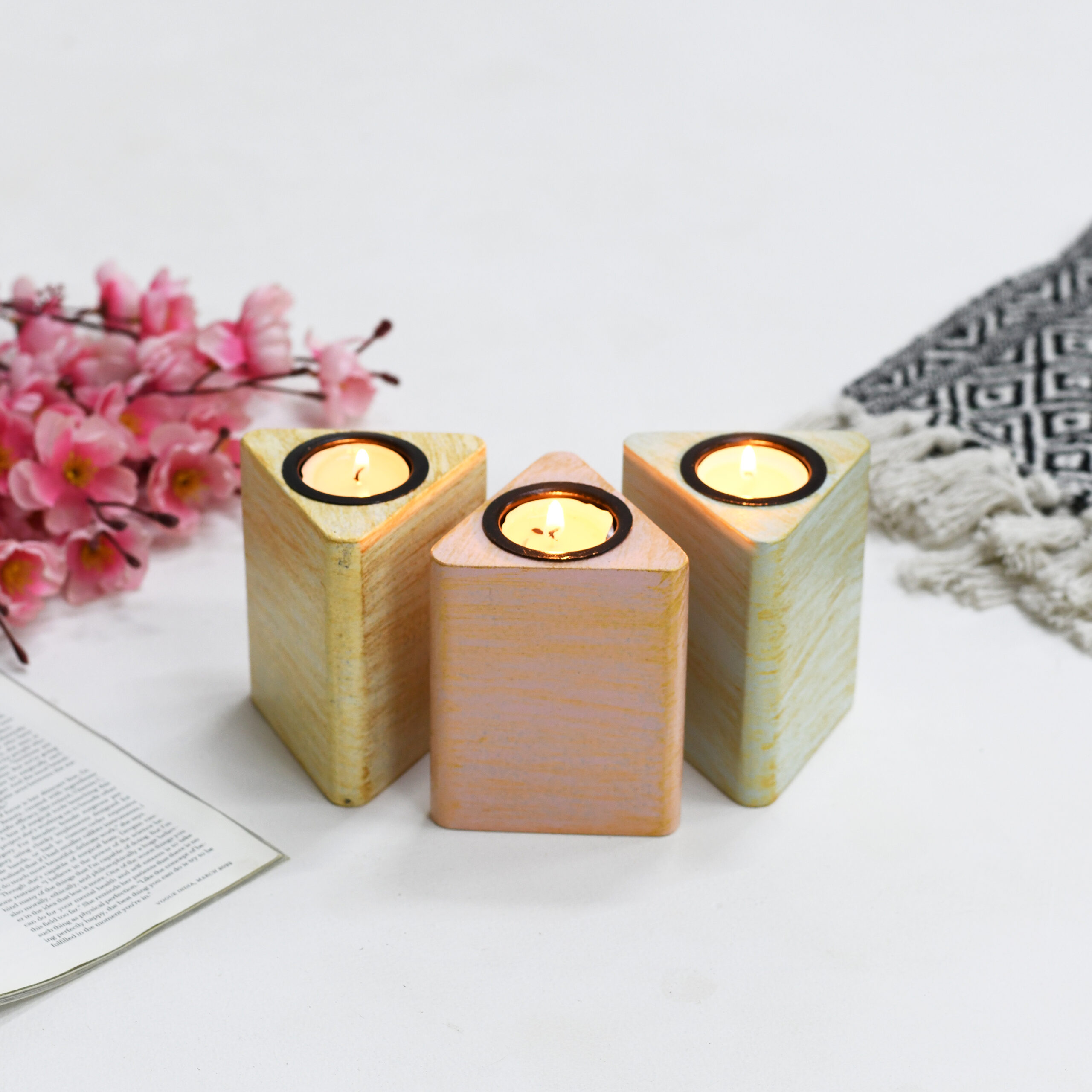 CRAFTMITRA Multicolor Candle Holders (Pack of 3)