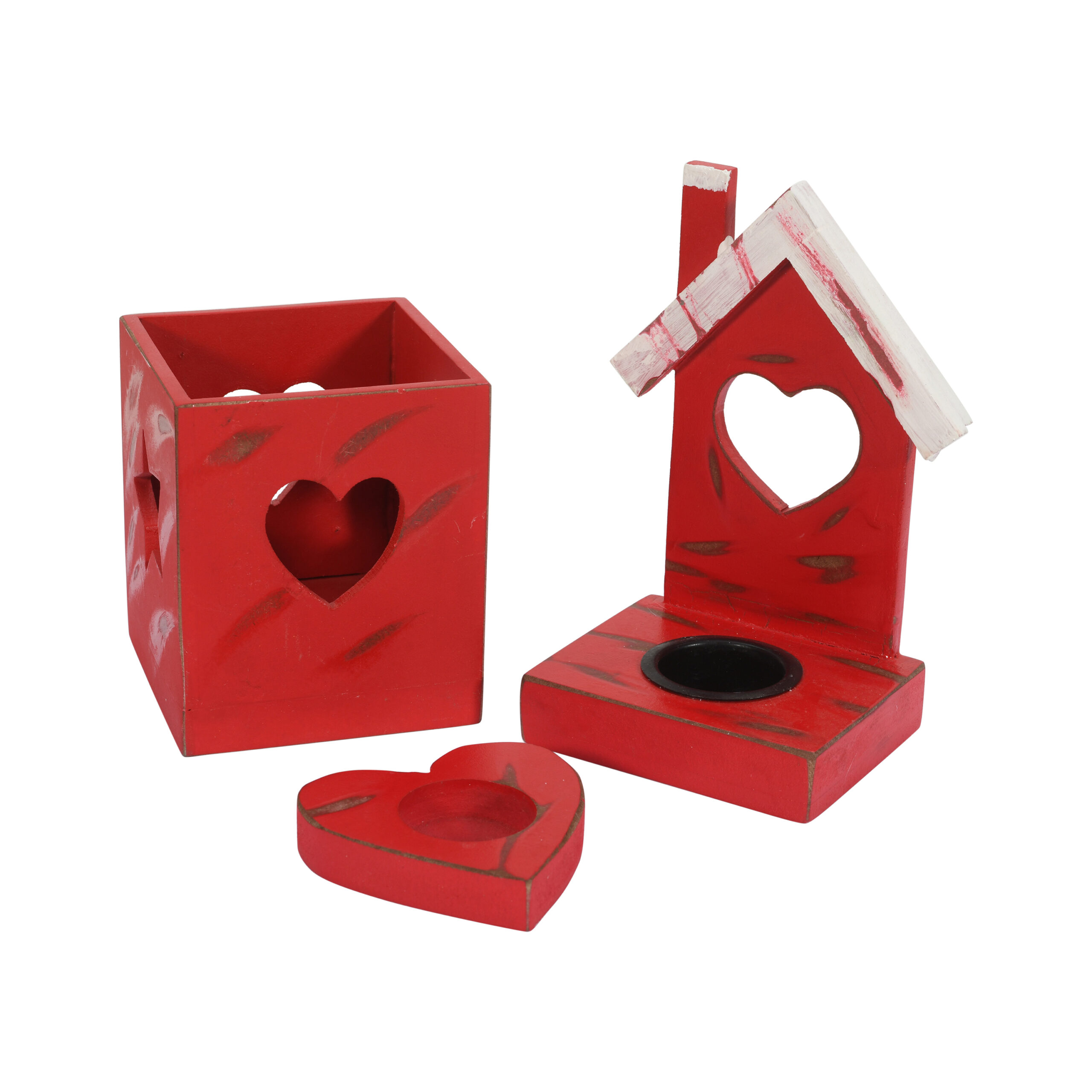 CRAFTMITRA Tea Light Holder for indoor and Outdoor Decoration | RED And WHITE Tea light Holder | Premium MDF | Wooden Base | Unique & natural Holder for Living Room Bedroom Office Storage Kitchen ( 8L x 8W x 12H ) Cms