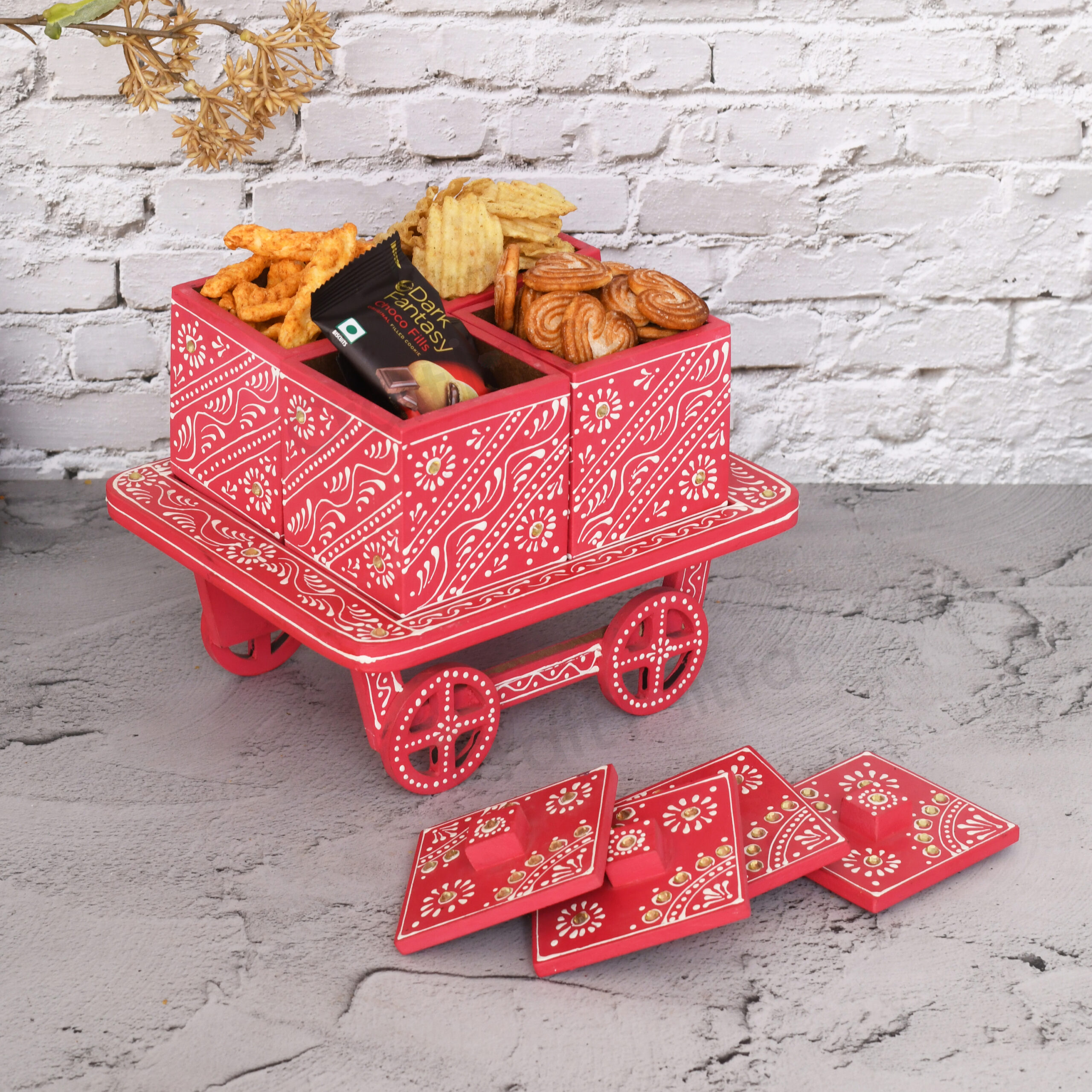 Trolley Dry Fruit Box with 4 Compartment (Red)